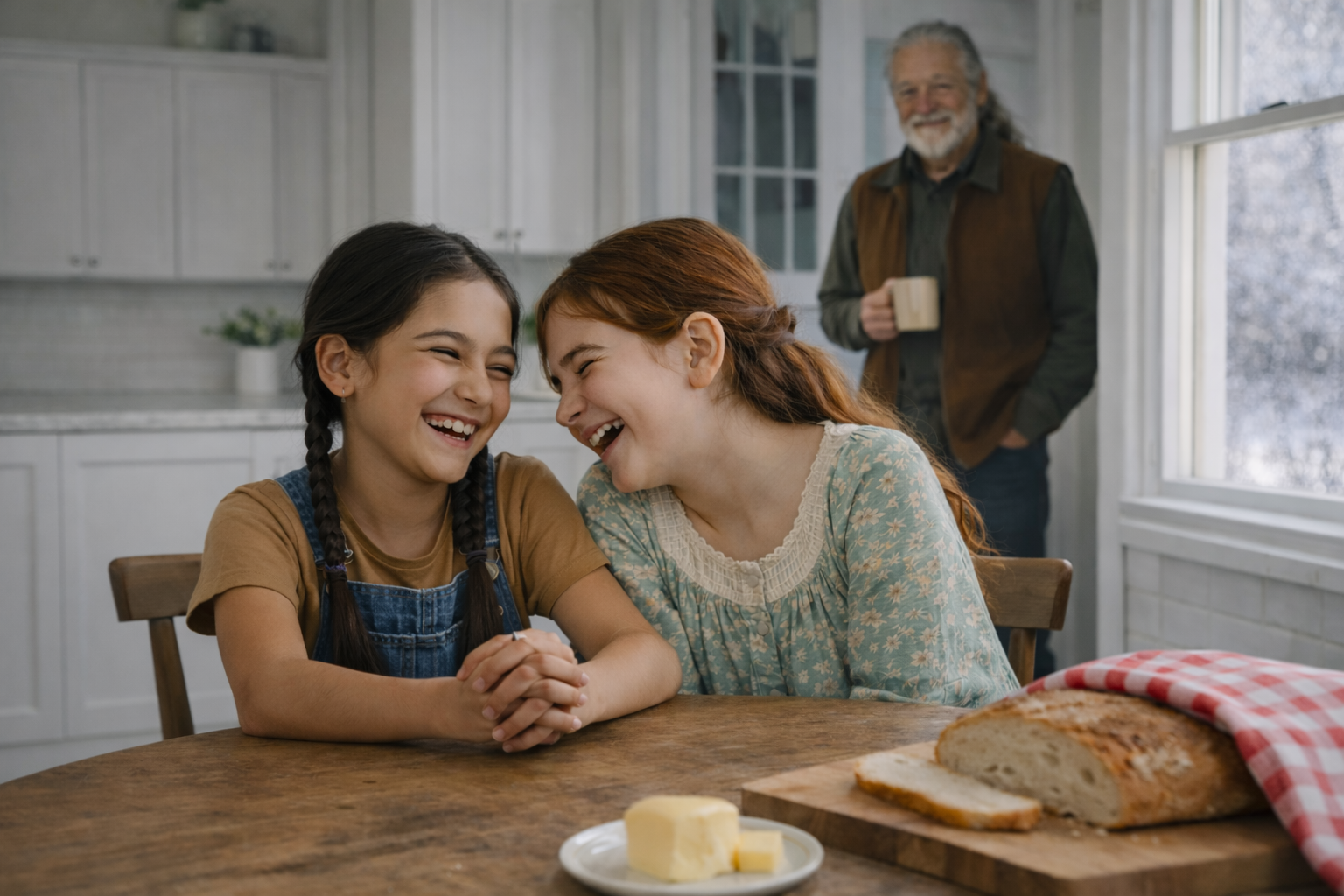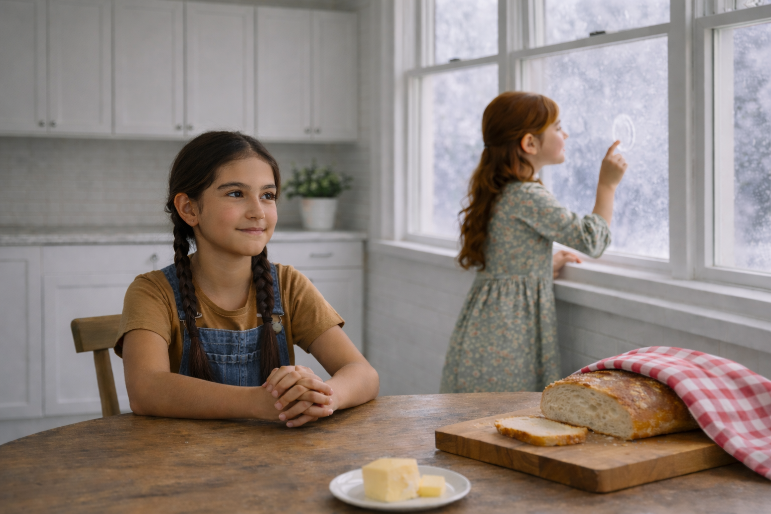 Maya sat at the table first, her hands folded, watching. She always noticed things before she spoke, as if she wanted to understand the whole room before choosing her words. Lydia stayed close to the window. She was younger than Maya, smaller, and rarely still for long. She traced the frost with one finger, then wiped a small, clear circle in the glass and peered through it, her breath fogging the pane, as if she expected the morning to answer back.